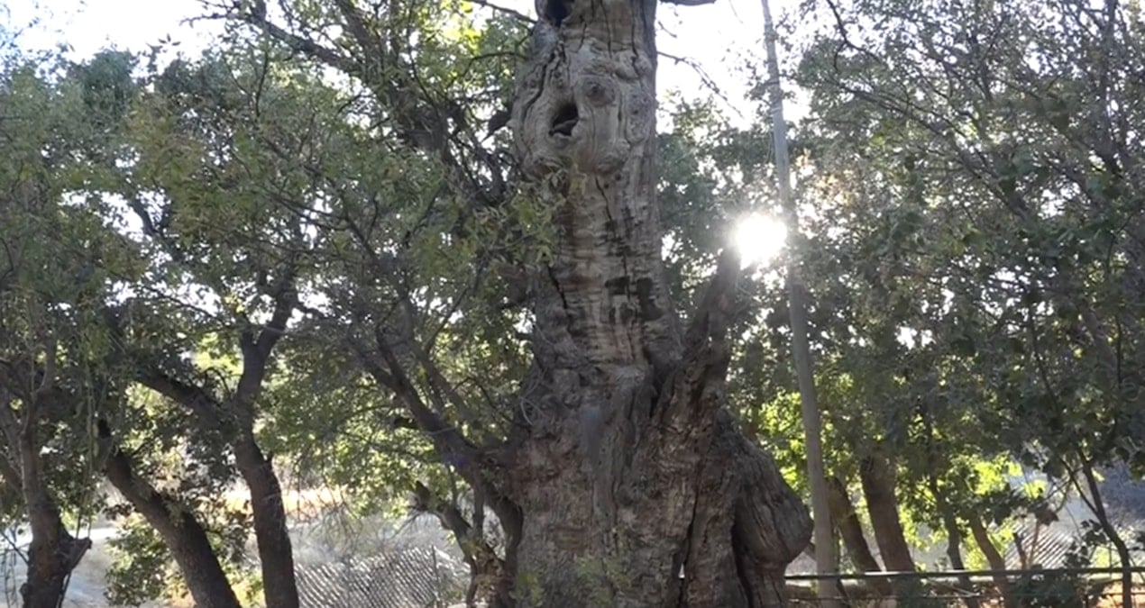 “Arkamızda görmüş olduğumuz ağaç bizim anıt ağacımız. Rivayete göre, Şeyh Hasan Oner Babamızın asasını dikip yeşerdiği ağaç. O da yaklaşık 700 senelik ağaç. Orman Bakanlığı’ndan geldiler, tarih yaptılar, 700 senelik olduğuna dair damgasını vurdular. Bu anıt ağacımız bir yangın evresi geçirdi. Yangın evresi geçtikten dolayı bu ağaç yüzde 70 ölü, yüzde 30 canlı. İşte ben her sene burada su vererek biraz canlandırmaya çalışıyorum ağacımızı.”