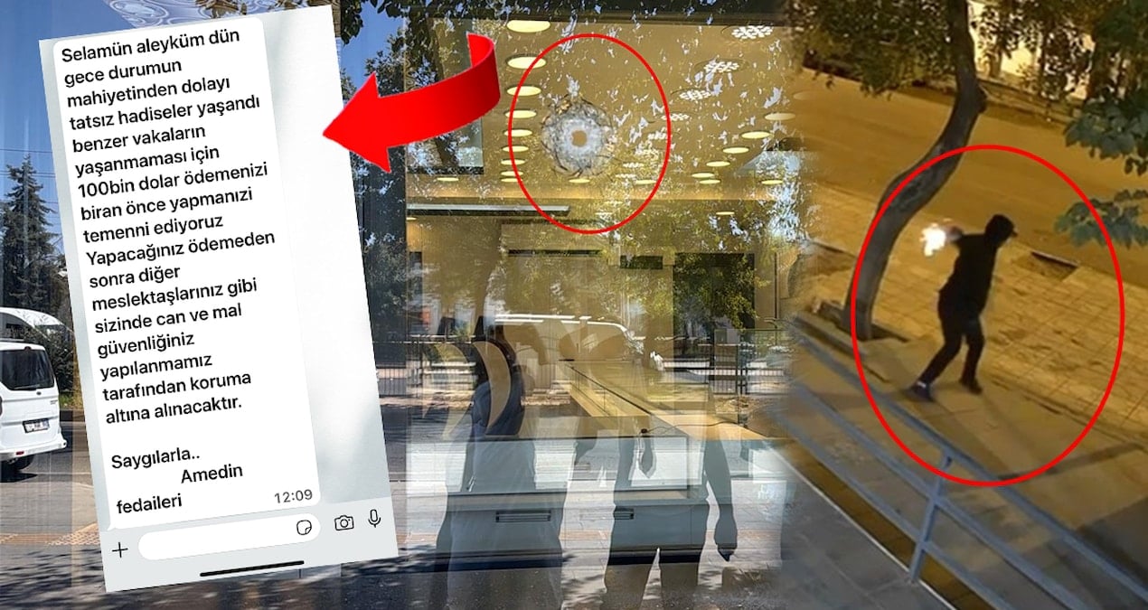 Gece saatlerinde meydana gelen olayda, kimliği belirsiz kişiler tabancalarla kuyumcuya ateş açtıktan sonra kaçtı. Ardından kuyumcuya yabancı numaralardan mesaj gönderen saldırganlar, “Benzer hadiselerin yaşanmaması için 100 bin dolar ödemenizi temenni ediyoruz. Ödeme sonrası diğer meslektaşlarınız gibi can ve mal güvenliğiniz koruma altına alınacaktır” ifadeleriyle tehditte bulundu.