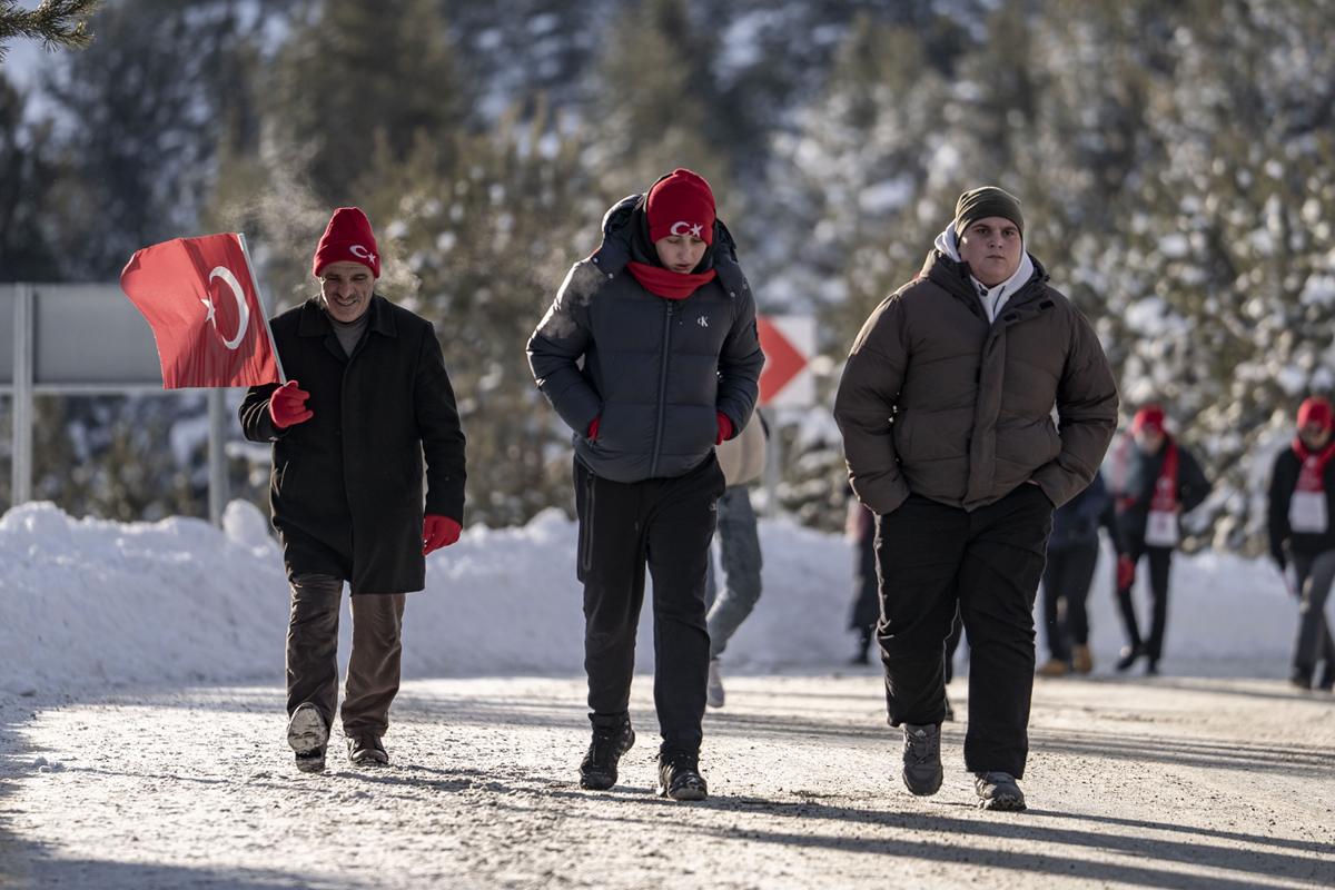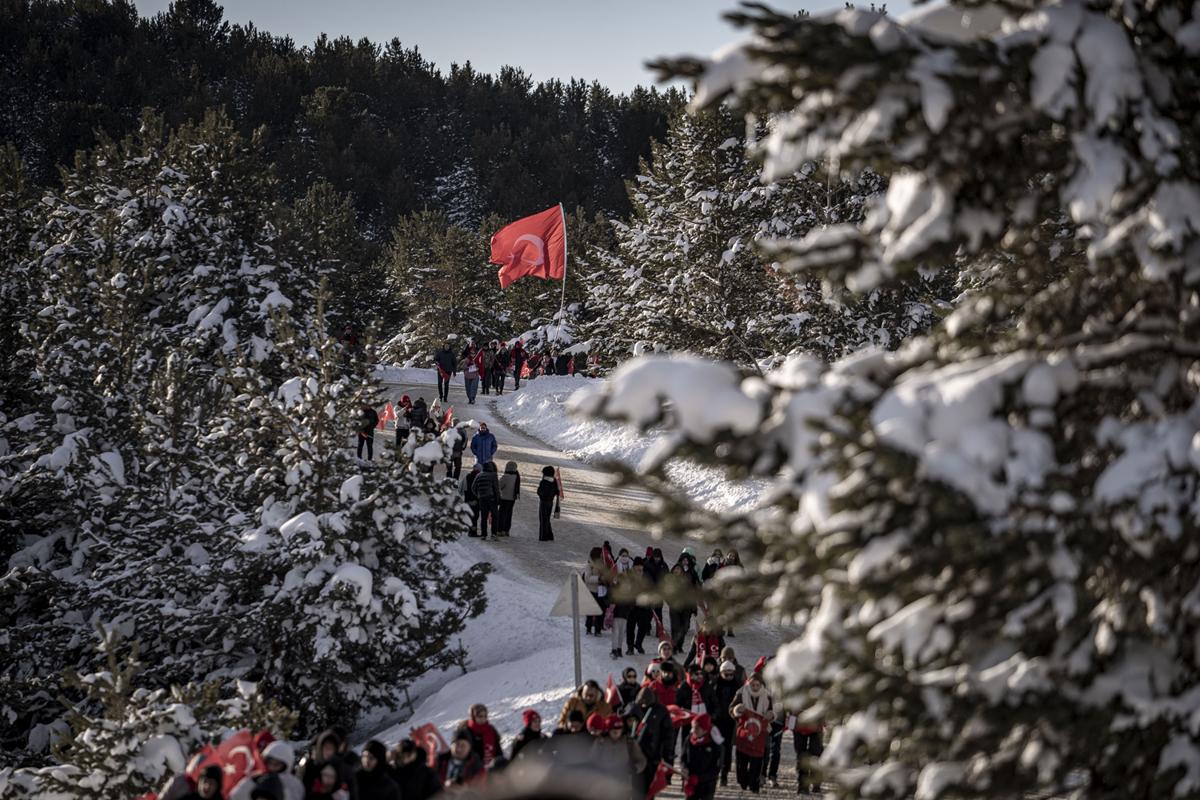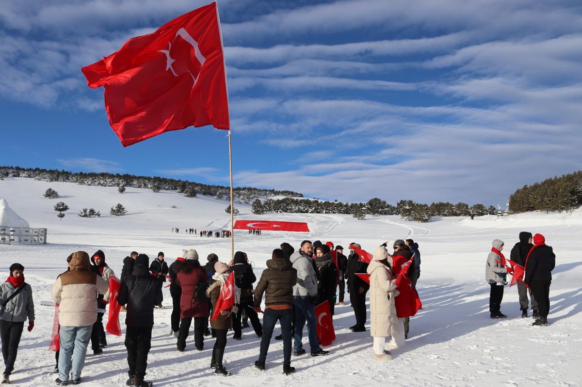 Kent merkeziyle Sarıkamış ilçesinden otobüslerle zirveye ulaşan katılımcılar, Türk bayraklarıyla yürüyerek toplanma alanına geldi. Vatandaşlar, Kızılçubuk bölgesinde şehitler anısına yapılan kardan heykellerin önünde fotoğraf çektirdi.